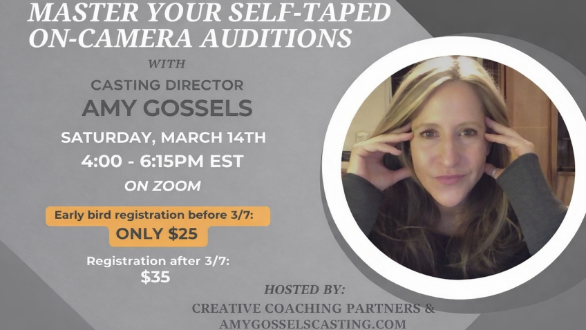 On-Camera Audition Masterclass with Casting Director AMY GOSSELS - Saturday, March 14th - 4PM EST